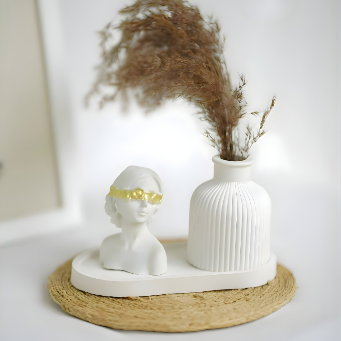 Blindfold girlBud vase with flowers Marble Trinket tray